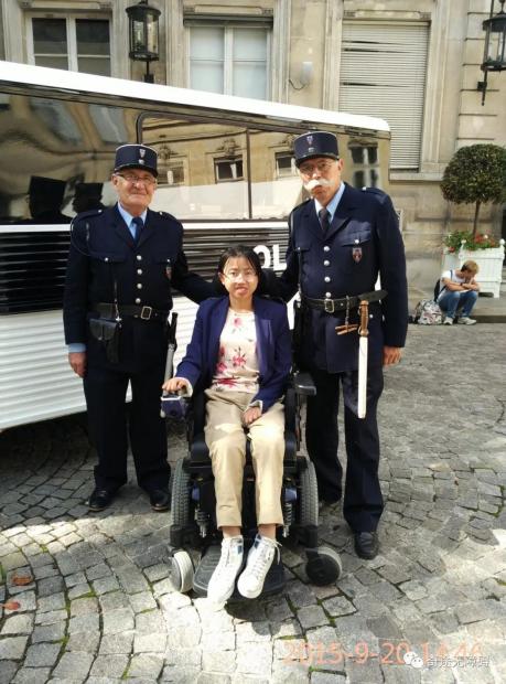 左边的这张图是我在爱丁堡参加了罕见病的大会,作为演讲嘉宾。我旁边坐的这一位挪威女孩和我一样,患有神经肌肉病。